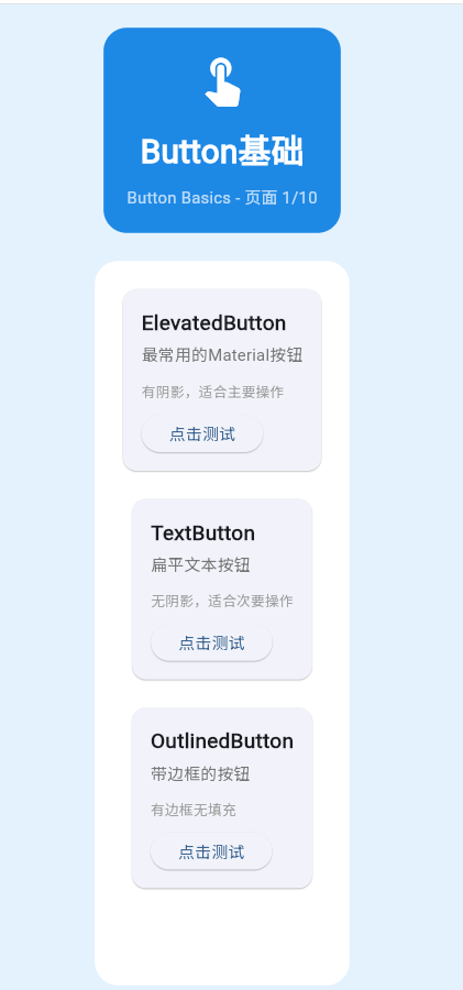 Flutter提供了多种按钮组件,满足不同场景的需求。