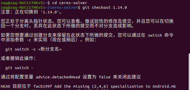 bash# 1. 进入文件夹 cd ceres-solver # 2. 切换版本 git checkout 1.14.0
