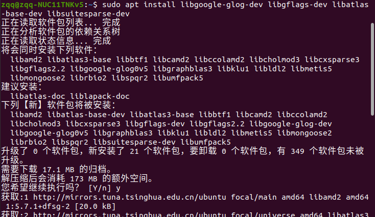 这一步会自动安装 Glog、Gflags 以及 Ceres 编译所需要的数学库。
