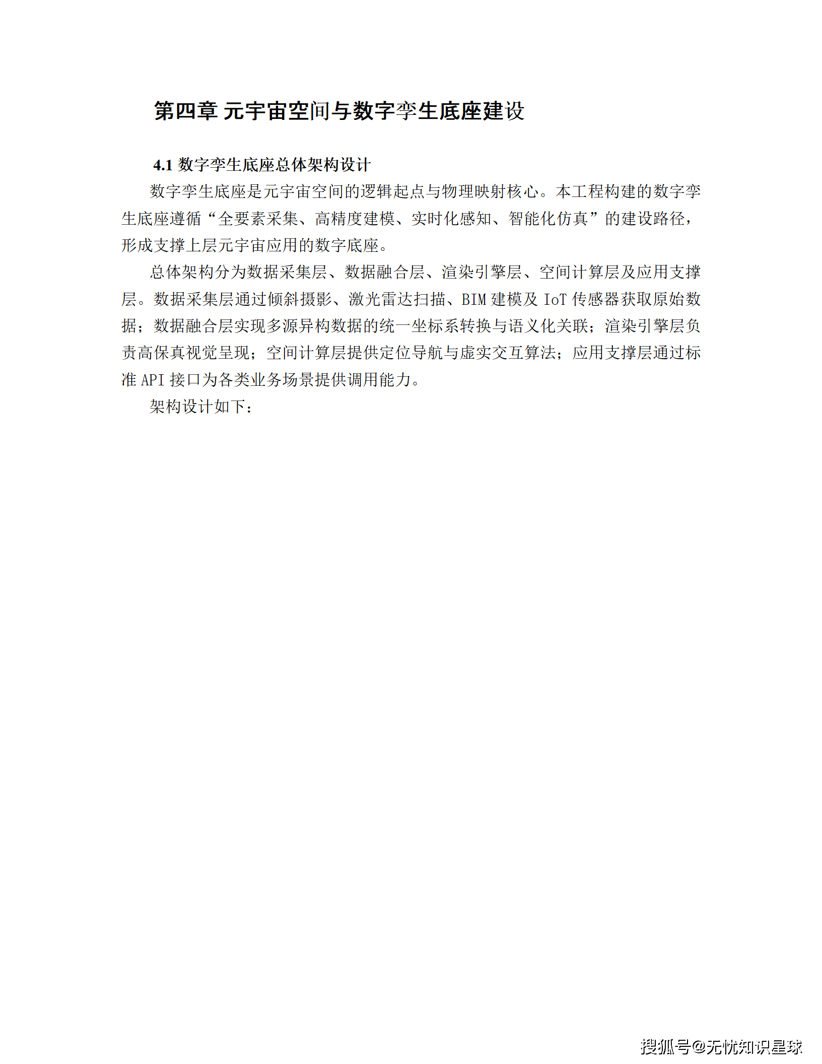数字孪生底座是整个元宇宙空间的逻辑起点。项目采用"空地一体、多源融合"的采集策略,构建毫米级精度的时空数据基础。