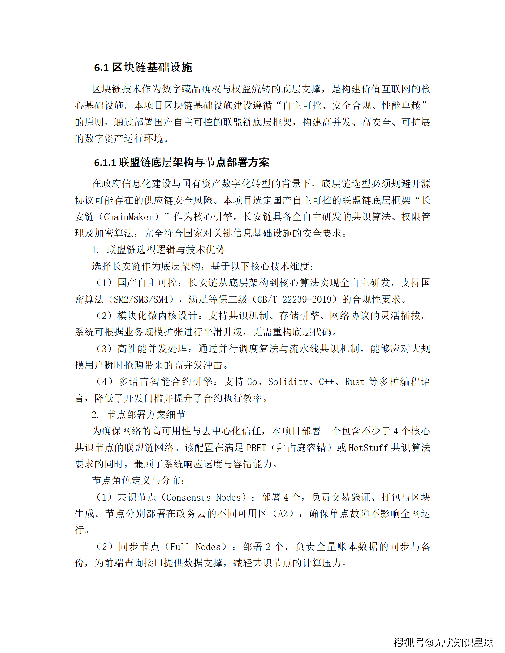- 节点部署:部署不少于4个核心共识节点,分布在政务云的不同可用区,确保高可用性与去中心化信任。