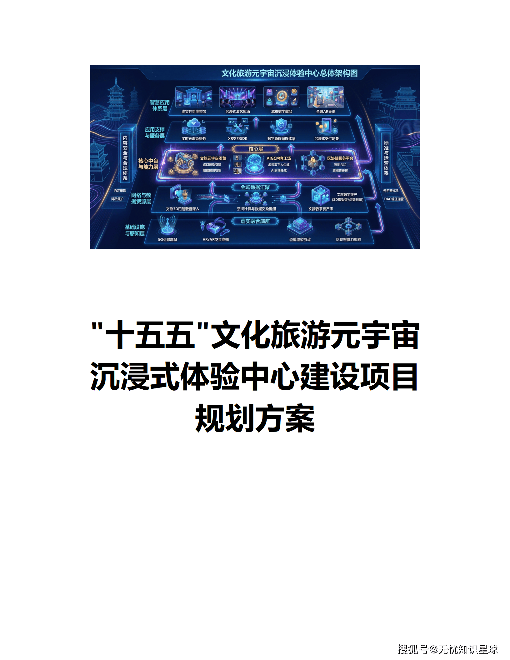 摘要:在数字经济与文化强国战略交汇的今天,传统文旅产业正面临前所未有的挑战与机遇。本文基于一份详尽的《某市"十五五"文化旅游元宇宙沉浸式体验中心建设项目》方案,深入剖析了该市如何通过深度融合数字孪生、扩展现实(XR)、人工智能(AI)及区块链技术,构建一个虚实共生、跨时空交互的文旅新生态。我们将系统性地拆解其顶层设计、痛点诊断、技术架构、核心场景与安全体系,为读者呈现一幅未来文旅产业的全景蓝图。