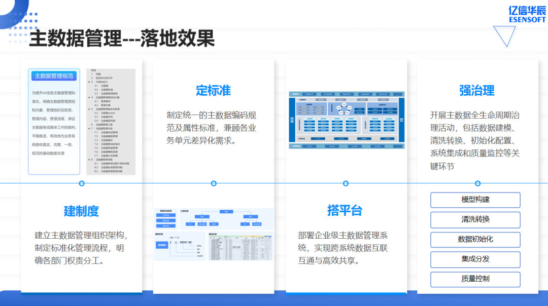 亿信华辰为某大型食品集团构建的主数据管理体系,设立了标准化组织与流程,制定了统一的落地标准,使得各个业务部门能够在相同规则下运行,并避免了数据孤岛现象。