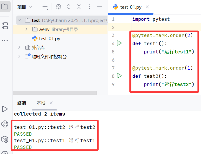 当你需要调整顺序时,只需要在测试用例上加上**@pytest.mark.order(你想要的顺序)**即可
