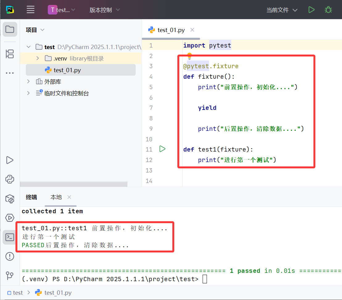 当autouse=True时,fixture会在所有测试函数执行之前自动调用,无论这些测试函数是否显