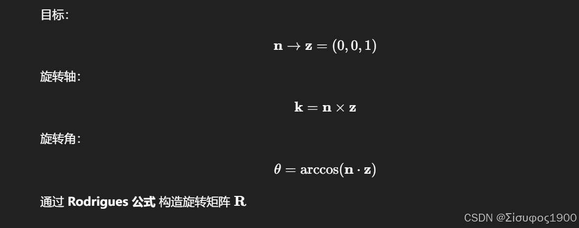| 平面法向对齐 Z 轴 | n=(0,0,1) |