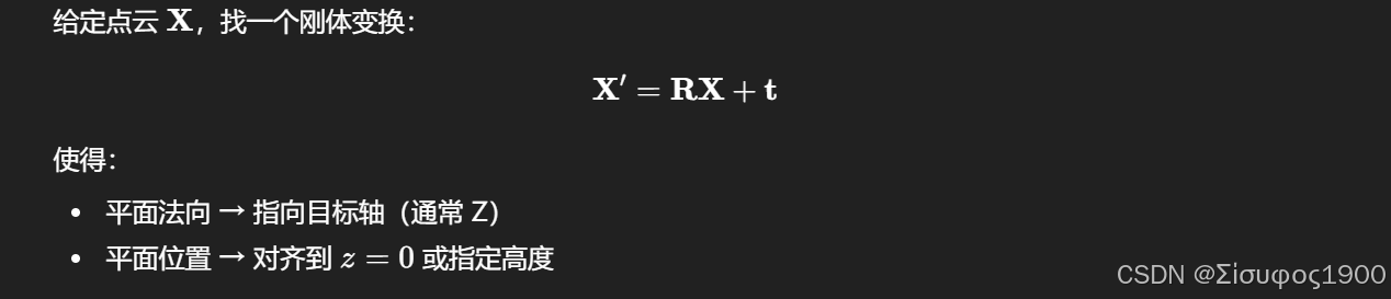 通过估计一个参考平面,把点云或图像坐标系旋转 / 平移,使该平面满足某个规范姿态