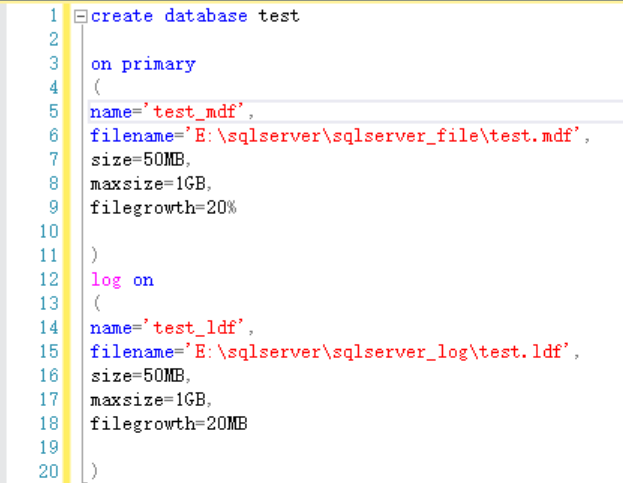 filegrowth=增量大小 #数据库增长率