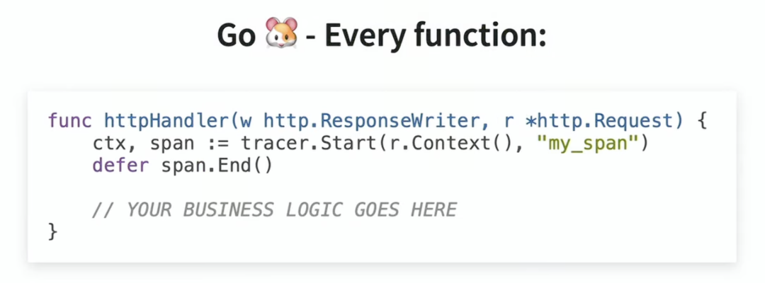 Gopher强烈希望 Go 也能像其他语言那样,轻松实现插桩从而注入追踪(trace)能力: