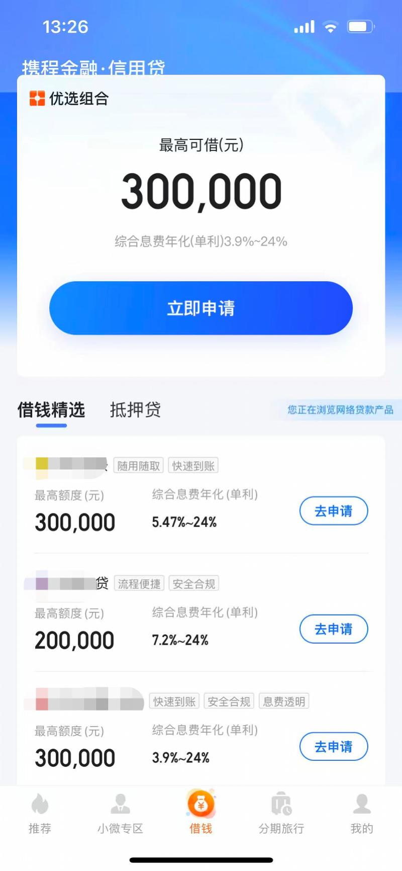 (图源:图为携程金融"优选组合------借钱精选"部分合作方状况)