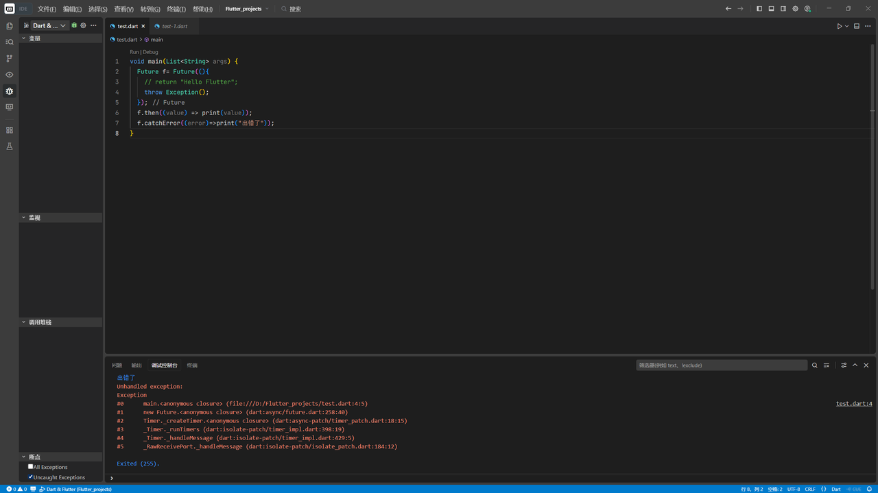 - 失败(error):抛出异常。