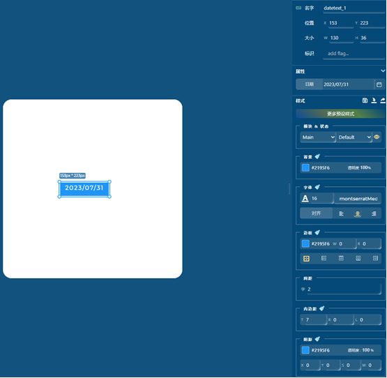显示当前的日期,年月日。在GUI_guider中可以通过右侧的属性列表设置日期、背景以及字体的颜色大小格式。