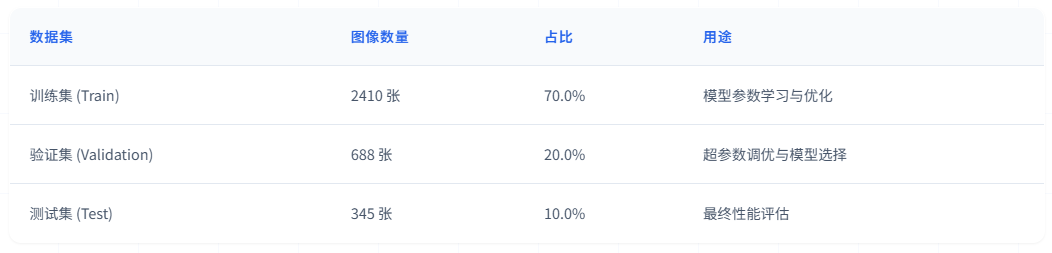 数据集按照约 70:20:10 的比例划分为训练集、验证集和测试集: