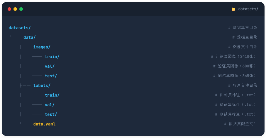 数据集采用标准 YOLO 格式组织,通过 data.yaml 配置文件即可快速集成到训练流程中。
