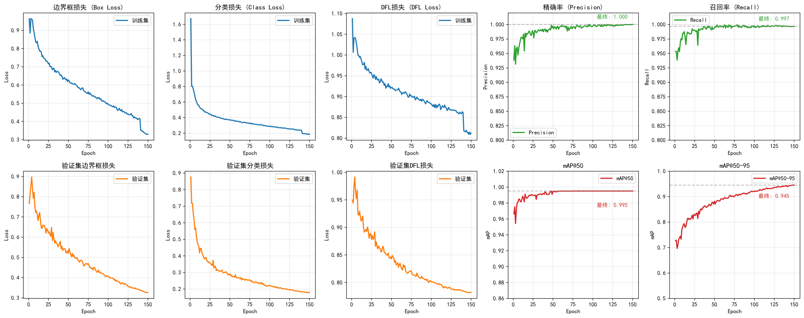 基于 YOLOv11 模型在本数据集上进行训练和评测,使用mAP@0.5与mAP@0.5:0.95等标准指标对模型检测效果进行评估。评测结果如下:
