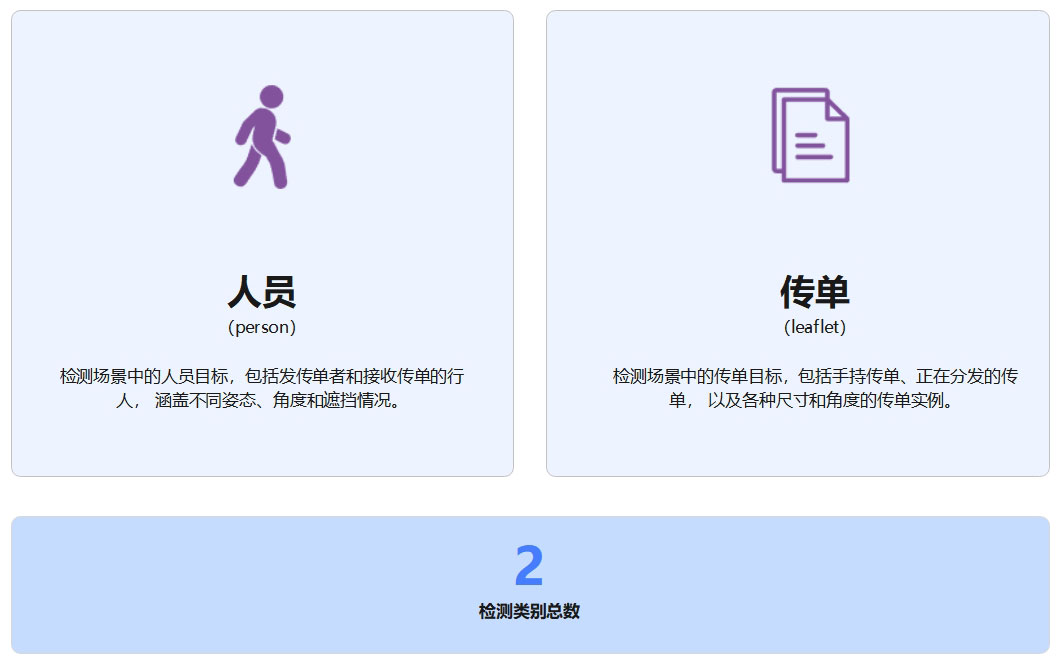 本数据集是一个专门针对公共区域发传单行为的目标检测数据集,包含 3,443 张真实场景图像和 6,886 个精确标注框。 数据集采用 YOLO 格式标注,涵盖 person(人员)和 leaflet(传单)两个核心类别, 旨在支持公共空间中人员与传单交互行为的智能识别与分析。