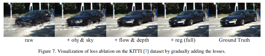 定性结果如图 7 所示,随着损失组件的完善,渲染细节逐渐丰富,伪影减少。
