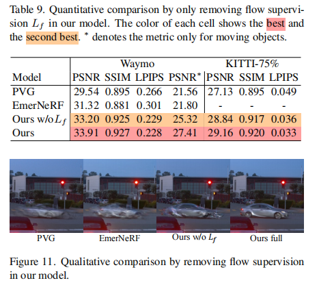 光流监督消融:移除光流损失后,模型在快速移动目标场景的性能明显下降(表 9、图 11),验证了光流监督对运动建模的重要性;