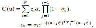 像素渲染:通过 α- 混合公式计算相机平面上每个像素的颜色值: