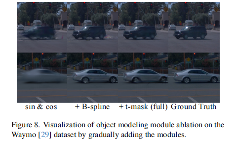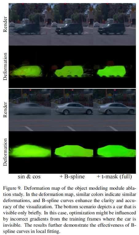 图 8 和图 9 验证了 B 样条曲线在局部拟合和时间掩码在处理目标突然出现 / 消失场景的有效性,尤其是在目标仅短暂可见的情况下,能够显著减少模糊和伪影。