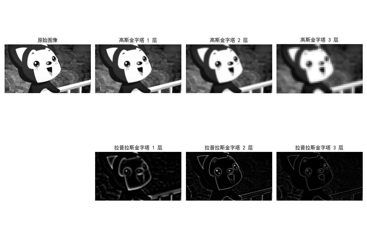 cv2.pyrDown():对图像进行下采样(高斯模糊 + 降维),生成高斯金字塔;cv2.pyrUp():对图像进行上采样(升维 + 高斯模糊),结合高斯金字塔生成拉普拉斯金字塔;- 拉普拉斯金字塔存储的是 "残差",可以通过这些残差恢复原始分辨率图像。