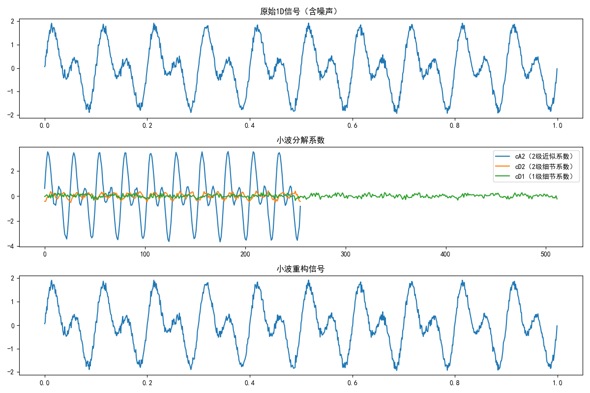 pywt.wavedec2():二维小波分解,返回各层近似系数和细节系数;pywt.waverec2():二维小波重构,根据分解系数恢复图像;- 图像压缩:置零高频细节系数,只保留低频近似,能大幅减少数据量;