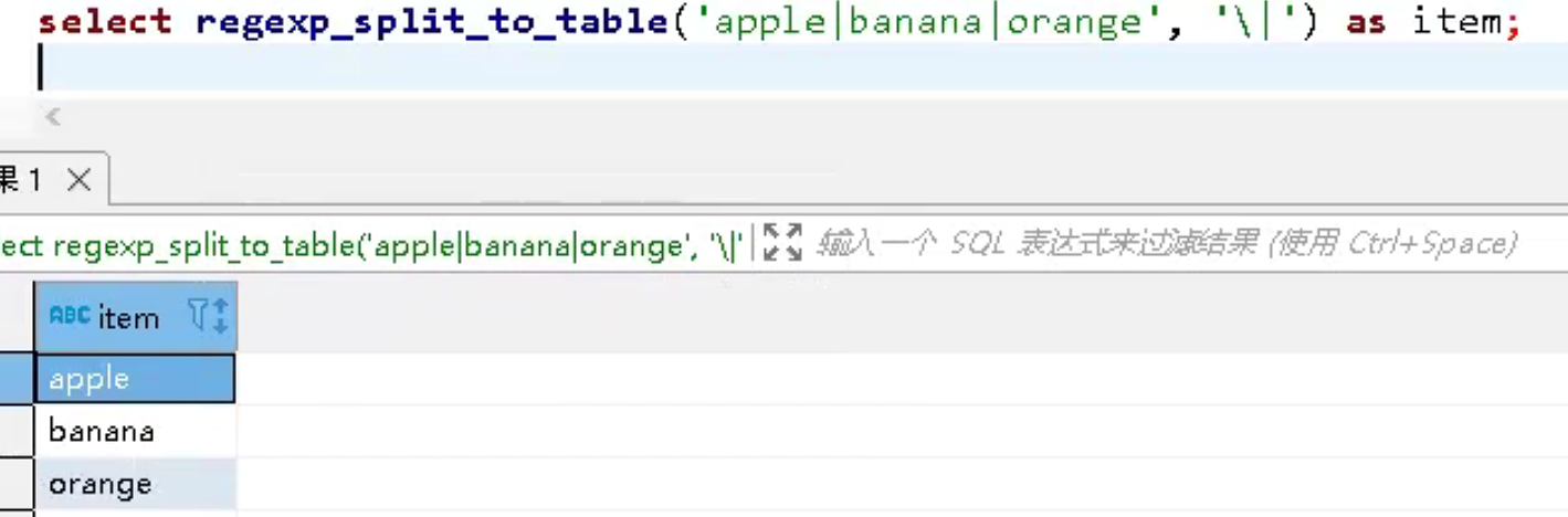 方法二:直接利用regexp_split_to_table将字符串切割并转换成表