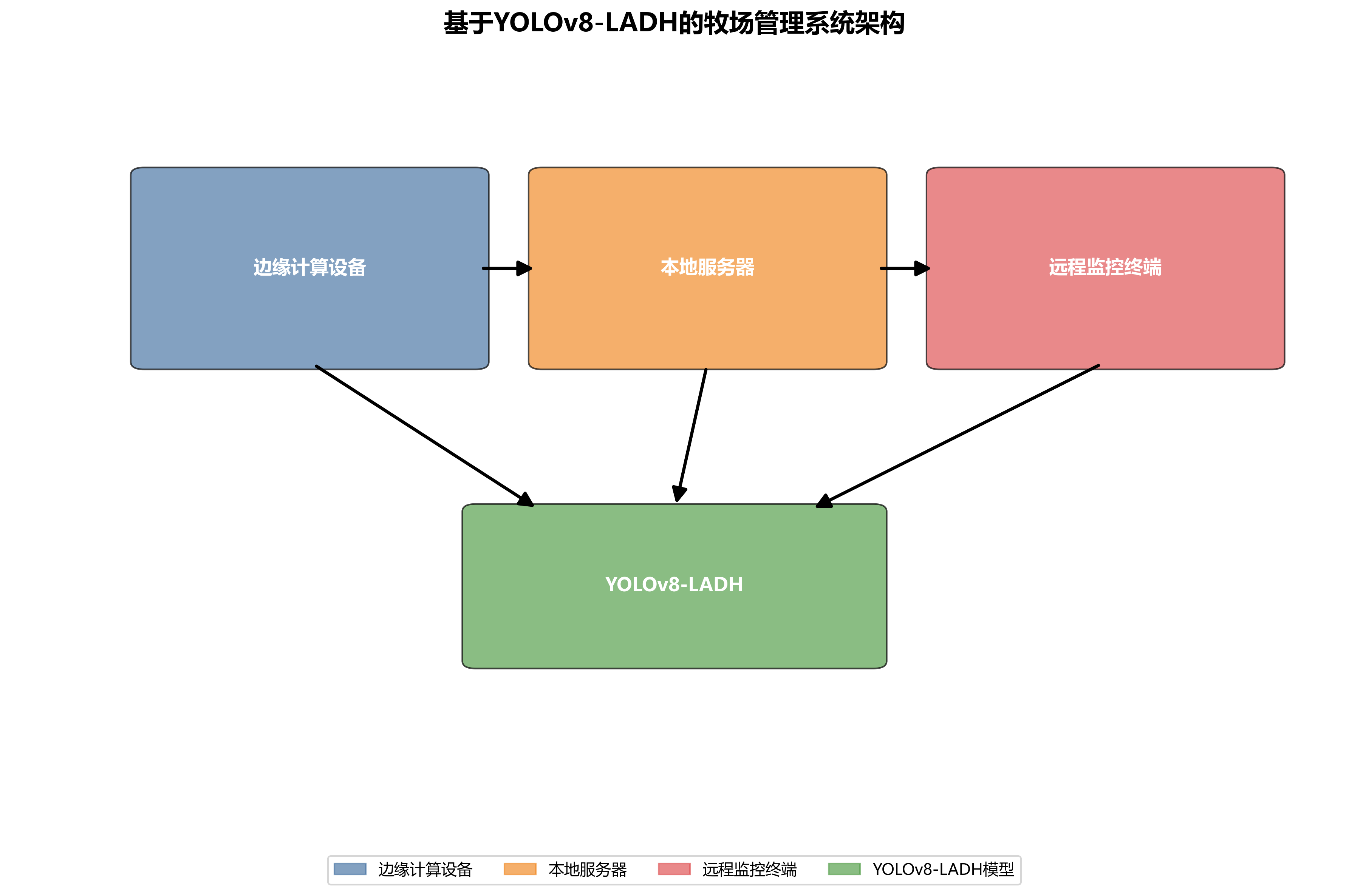 上图展示了基于YOLOv8-LADH的牧场管理系统架构,包括边缘计算设备、本地服务器和远程监控终端。
