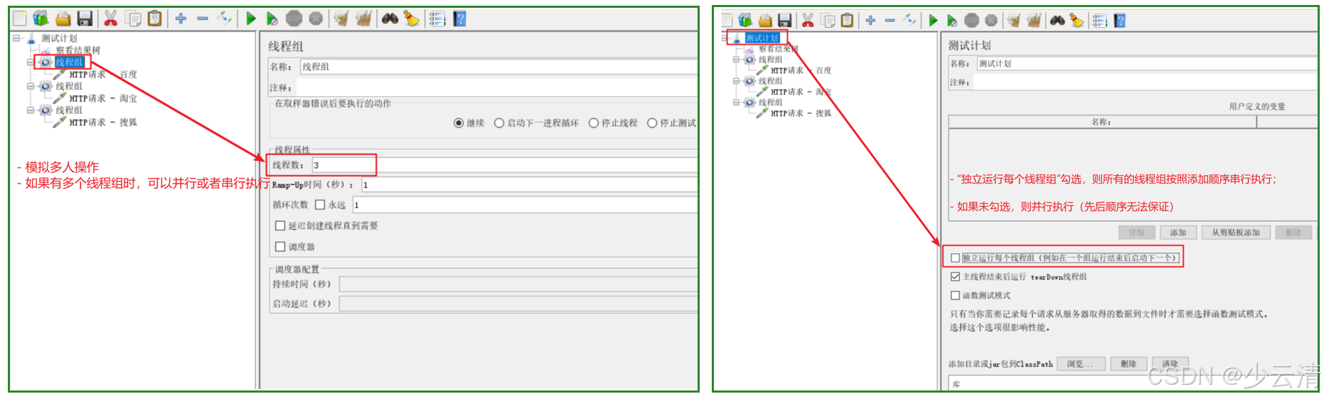 - 线程组可以添加多个, 多个线程组可以并行或串行