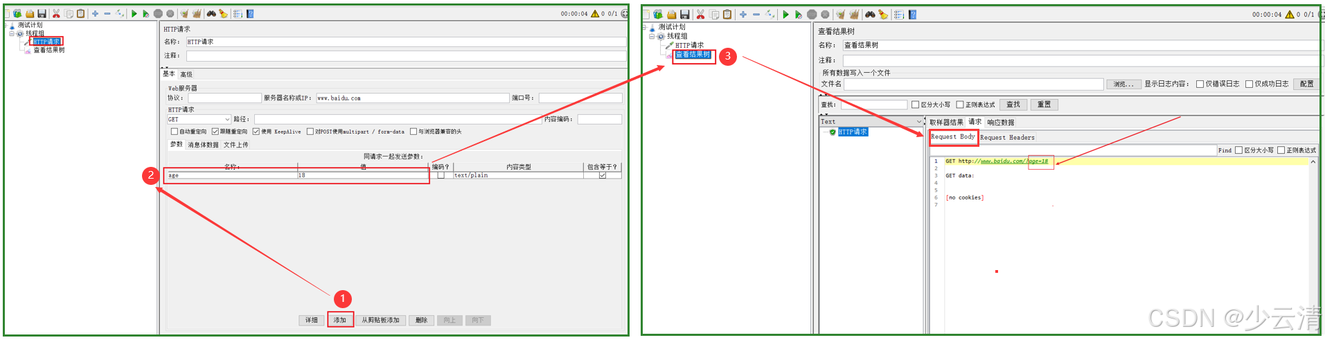 需求: 使用JMeter访问百度首页接口, 并查看请求和响应信息
