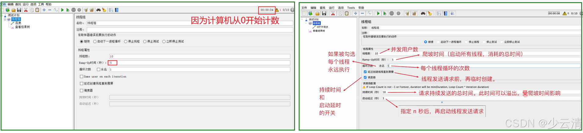 - 延迟创建线程直到需要: 勾选了表示 边创建边执行。适合线程数非常多,避免死机。