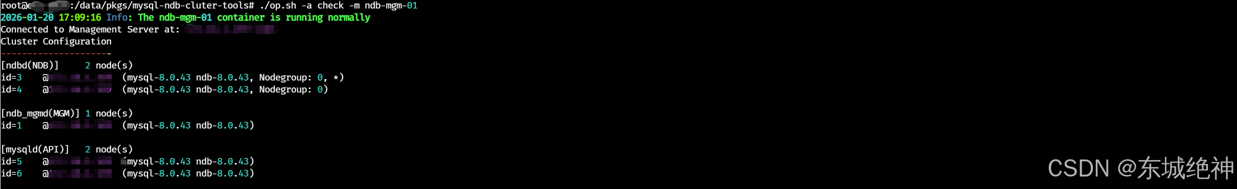 root@localhost:/data/pkgs/mysql-ndb-cluster-tools# ./op.sh -a check -m ndb-mgm-01