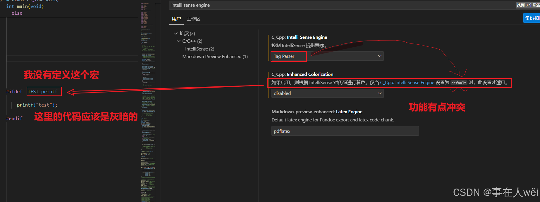 default是全功能语义分析引擎,支持宏判断(代码变灰)、精准提示等核心功能,但对大项目性能不友好;Tag Parser是轻量级语法解析引擎,性能极优,但仅能做基础语法识别,无法实现宏判断、精准提示等语义级功能;- 代码 "未定义宏变灰" 是default引擎独有的语义分析能力,Tag Parser + 第三方着色插件都无法替代。