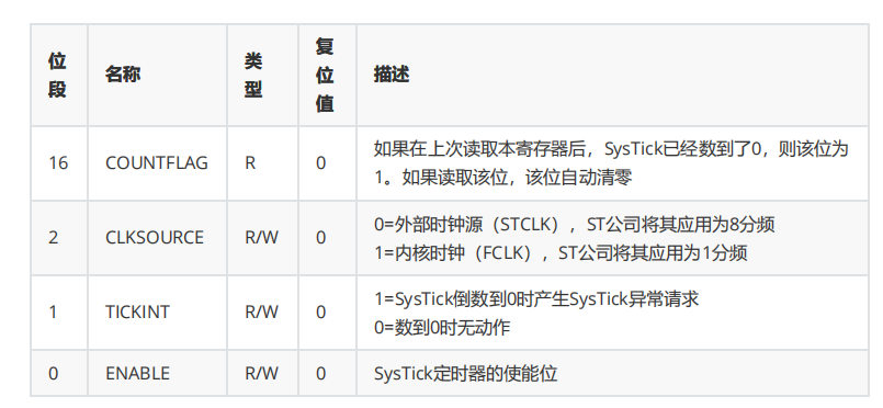 SysTick->CTRL:SysTick 的控制状态寄存器,关键位定义: