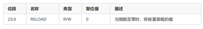 SysTick重装载数值寄存器(LOAD)