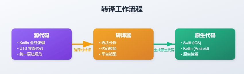 比如你用Kotlin写业务逻辑,框架帮你"翻译"成iOS的Swift代码。