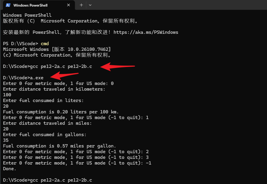 是程序的⼀部分,提⽰⽤⼾选择计算模式(美制或公制),然后接收数据并计算油耗。