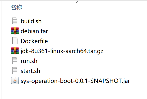 service目录结构,其中build.sh为构建docker镜像包的脚本,Dockerfile为镜像构建基础文件,debian.tar为后端构建依赖的基础镜像,run.sh为镜像包部署文件,start.sh为启动前准备文件。service包目录结构如下: