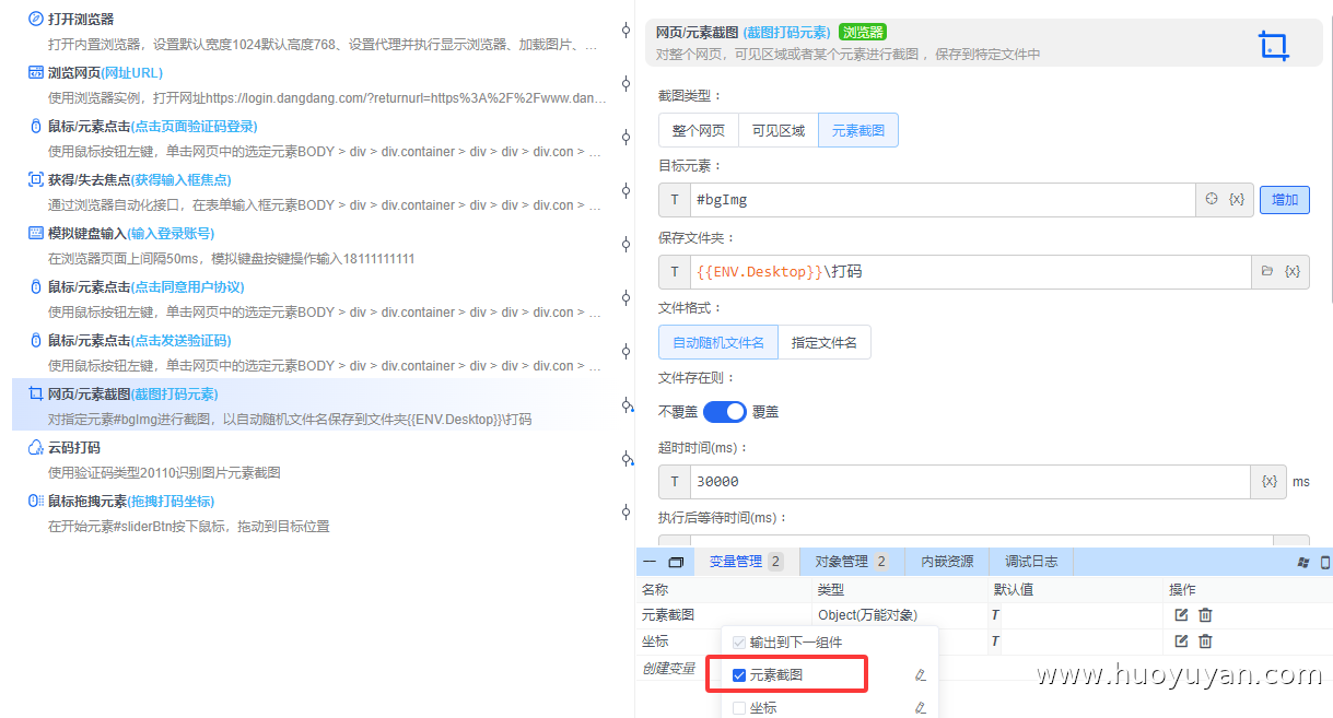 输出到变量:元素截图