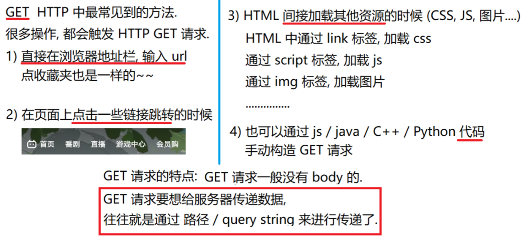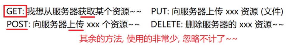 GET 是最常用 的 HTTP 方法,常用于获取服务器上的某个资源。