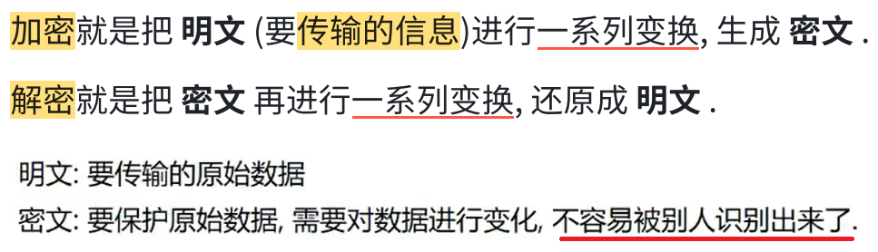 网络传输 中不 再直接传输明文 了,而 是加密之后的"密文"。