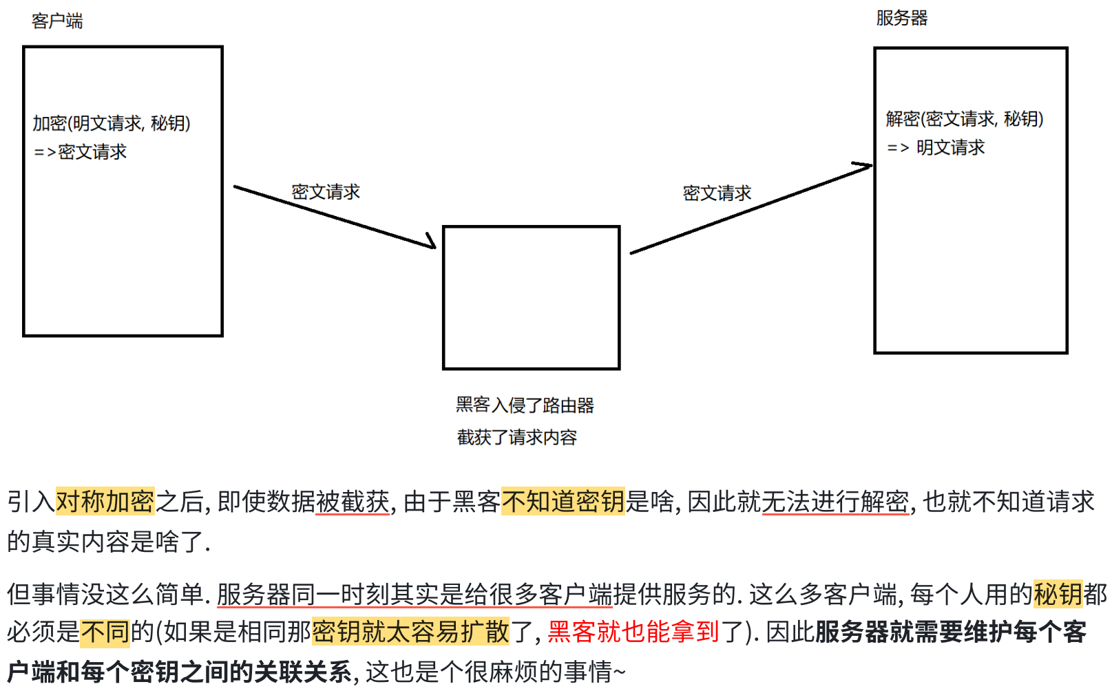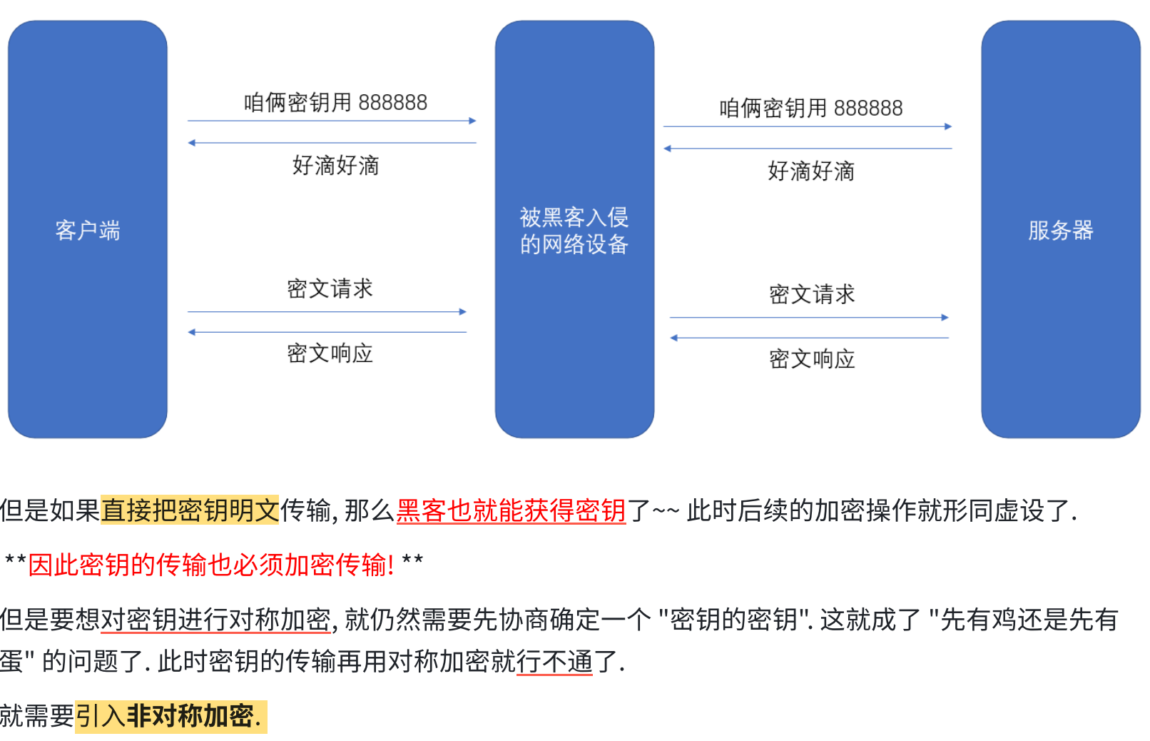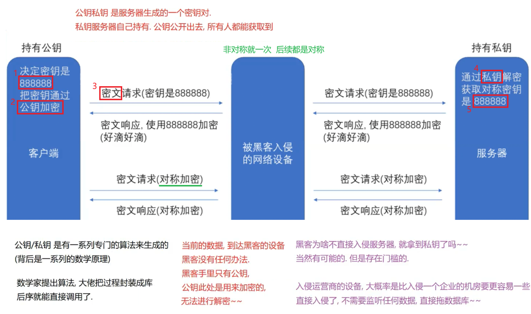 黑客可以使用中间人攻击 ,获取到对称密钥。