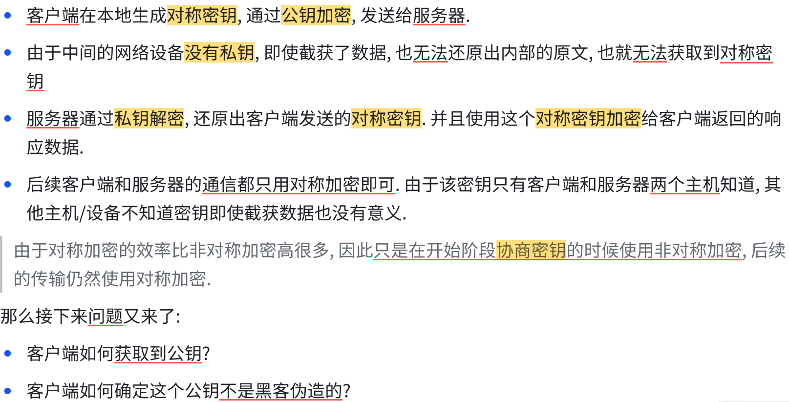 比较理想的做法 ,就是能在客户端和服务器建立连接的时候,双方协商确定这次的密钥是啥。