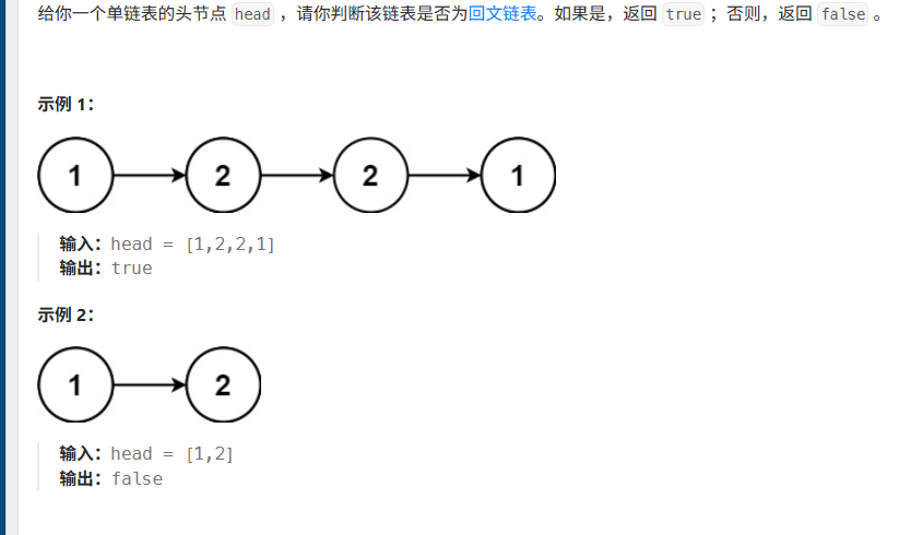 前面两题都是为了这一题做准备的,思路就是双指针先找到中间节点,然后翻转后半段,然后依次对比即可