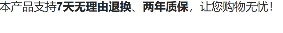 <p>本产品支持<strong>7天无理由退换</strong>、<strong>两年质保</strong>,让您购物无忧!</p>