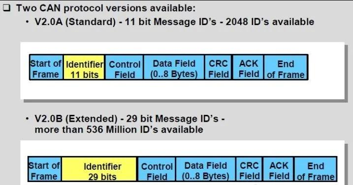CAN 协议有两个主要版本,它们在同一条总线上可以共存。它们最显著的区别在于"身份标签(ID)"的容量。
