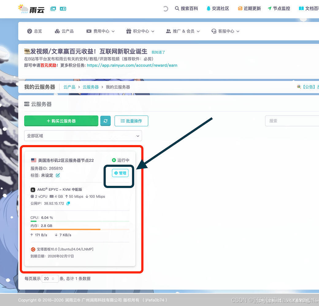 此时你需要回到雨云控制台: