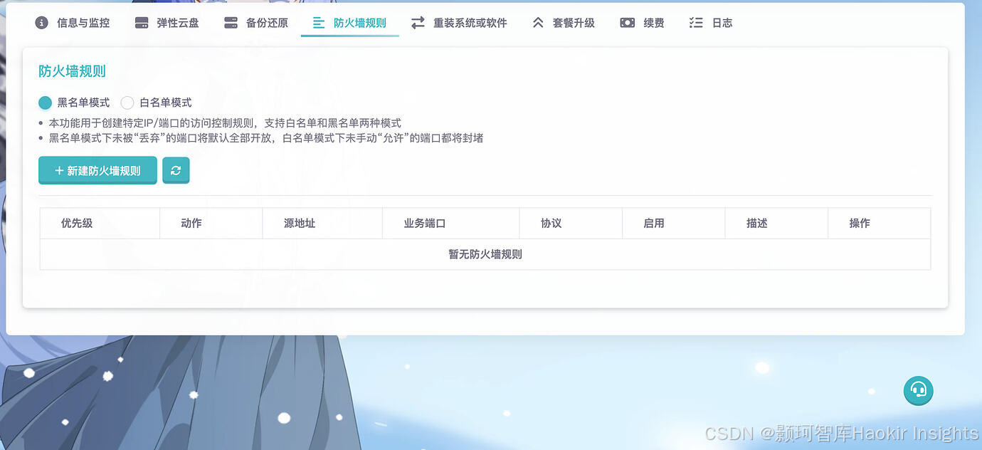 服务器管理 → 防火墙规则 / 安全组
