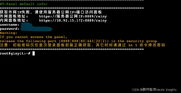 六、等待安装完成并记录面板访问信息