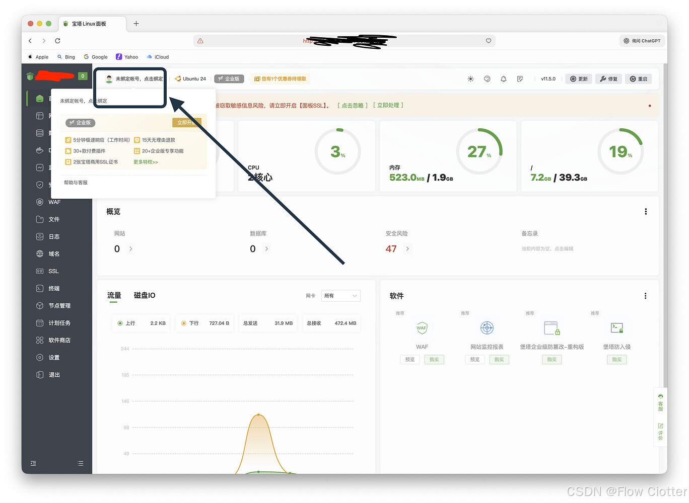⚠️ 如果不登录宝塔账号,面板大部分功能将无法使用。